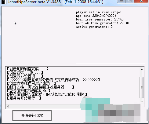 启动成功后,msg服务端会显示启动成功,以及NPC控制端也会显示成功