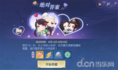 此外,每天晚上19点,天命者们还能携手前往天阙王城,一起参参与“绝对答案”活动!谁是直男直女?开动脑筋、挑战趣味问答,与心上人一起享受快乐的温馨时光吧!