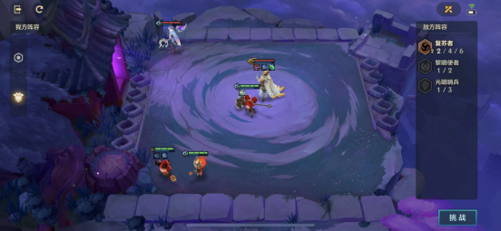 看到拥有巨额生命值的暗域巨魔我们就还是得依赖于提莫的“大魔王”羁绊进行斩杀。将提莫放在左下底角处避免直接被击杀,锤石放在左边用来控制跳到另外一边的佛耶戈。狗熊由于有“复生亡魂”站在第一排打出第一波控制,同时凯南能够衔接控制进行进一步限制敌人。