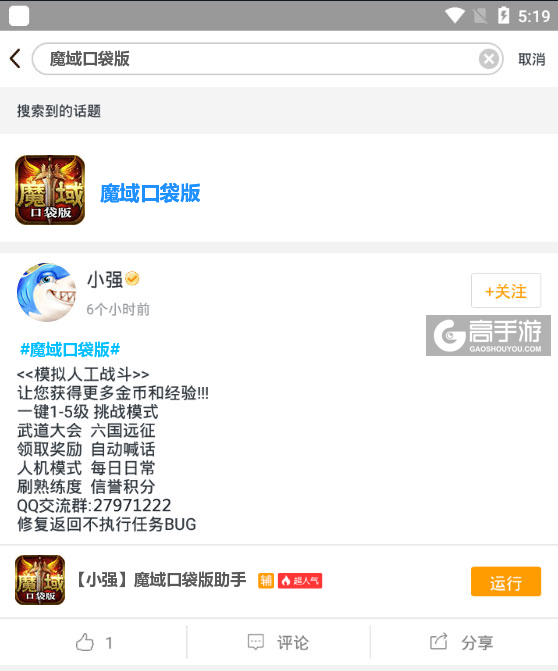 最后,关于此款魔域口袋版辅助工具软件如果在使用的过程中有什么不满意的地方或者有需要改进的地方可以关注我们的微信公众号(gaoshouyou)提问或者在下方留言给我们,我们会即时更新并处理。我们会认真对待您的每一条评论,并反馈给脚本作者,以便提升您的游戏质量。